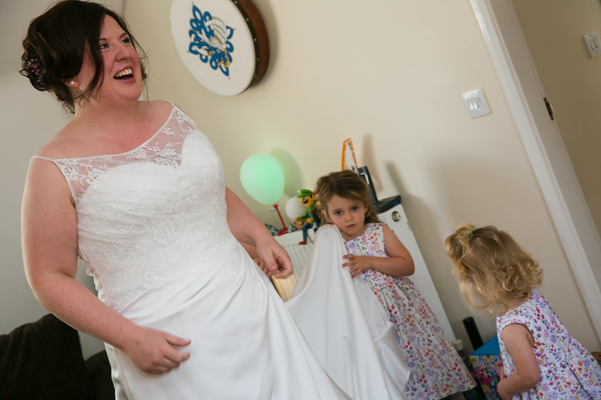 The bride....and the flowergirls were really trying to get to grips with the whole (carrying of the train business!).
