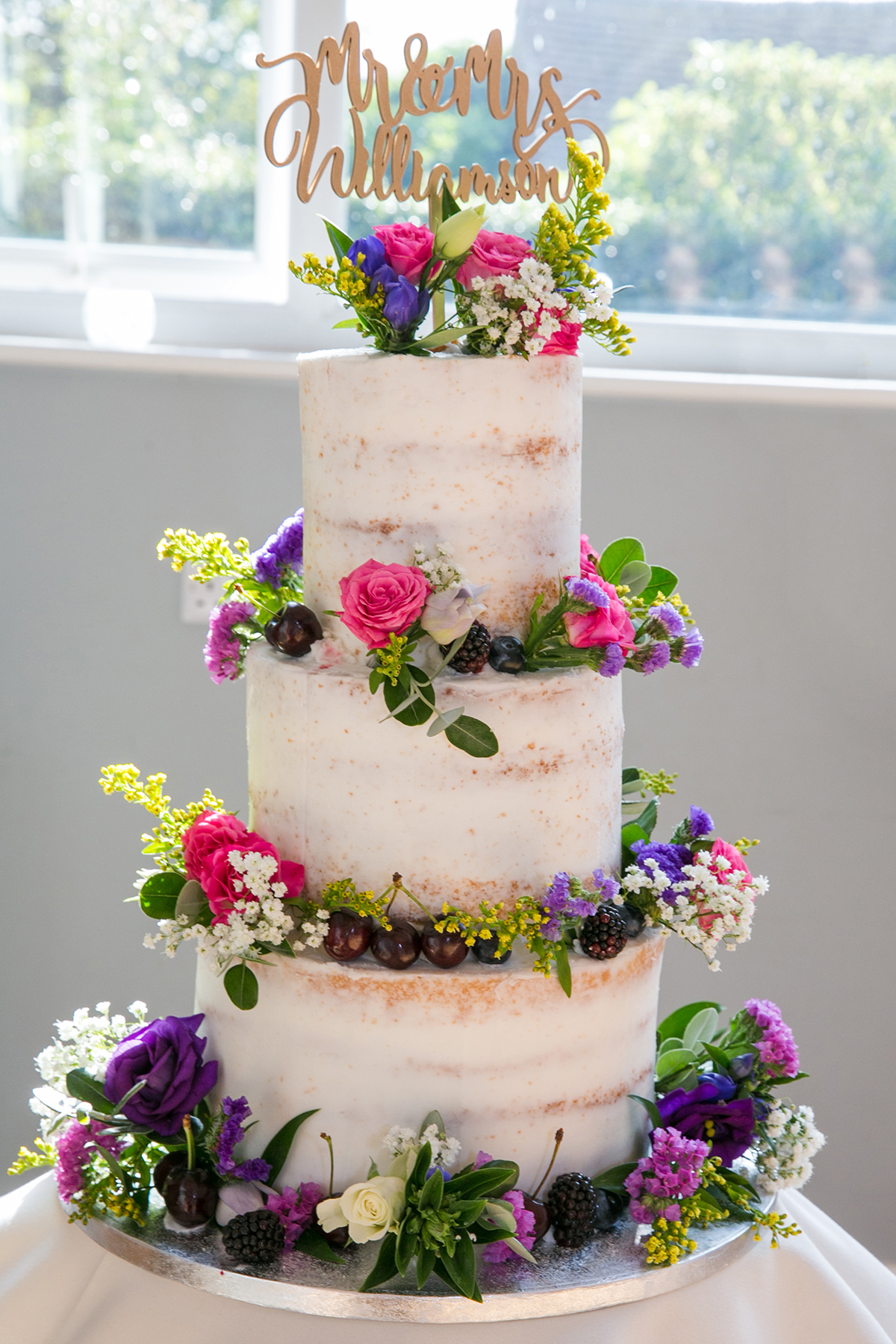 Naked sponge looks just yummy and very in keeping with the wedding details