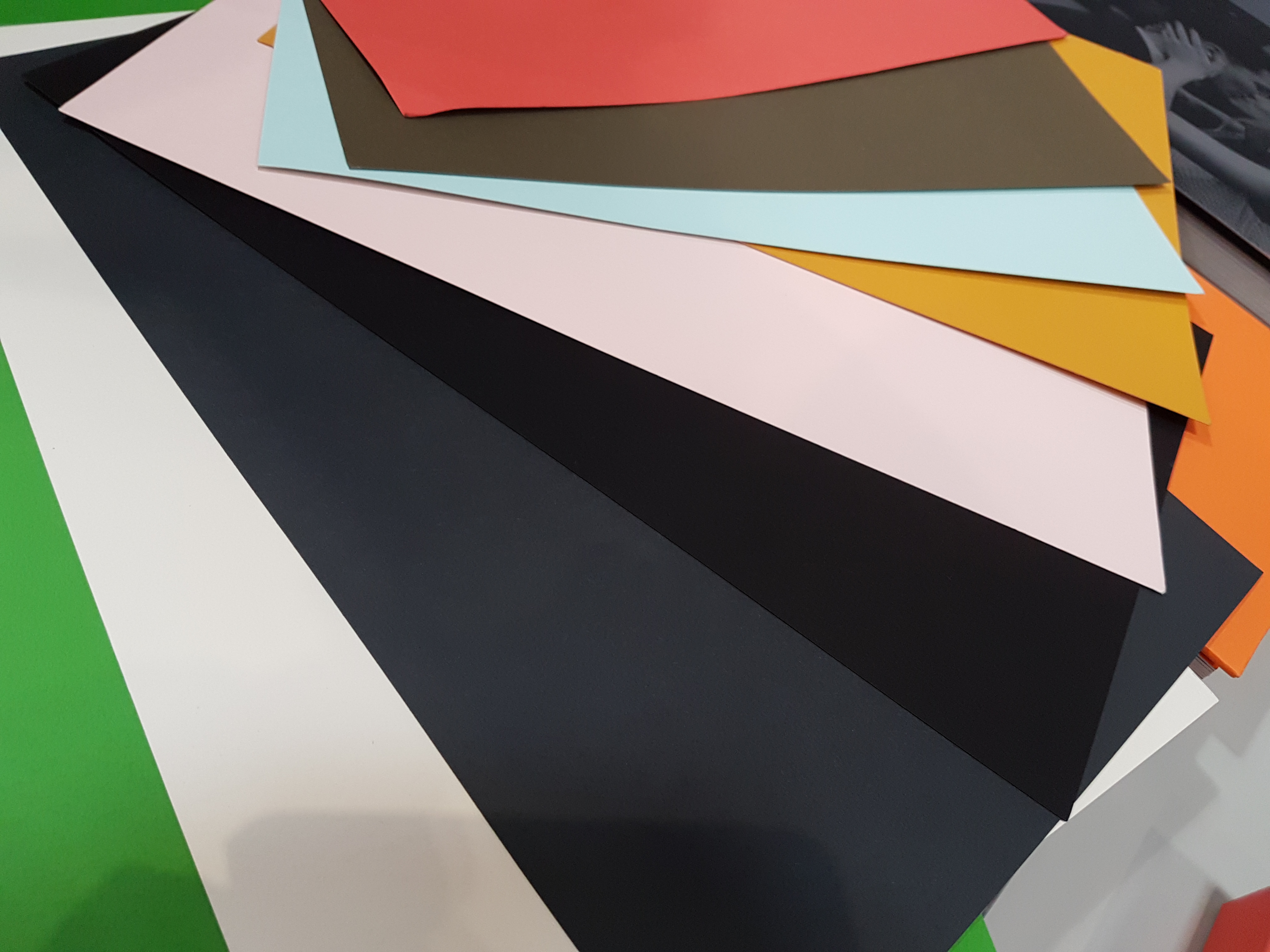 Nothing too bling and busy, simple and contemporary with embossing in a variety of ways. But what I love most about our supplier is they are one of the largest paper manufacturers in the UK so their skills and expertise is brilliant, you could say they are developers and scientists of stock as well as manufacturers. And, to show that they to can be kind and caring to the environment here are their new colours, the product is made from coffee cups and not a single stain in sight!